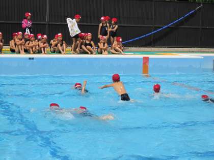 今朝は,夏とは思えない涼しさでしたが,子ども達はプールで元気よく水しぶきを上げていました。