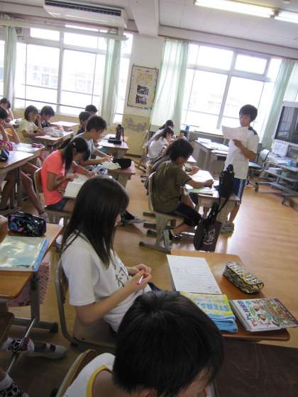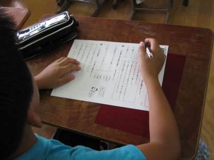 6年生は,「パンフレット作り」について学習したことをプリントを使って整理しています。