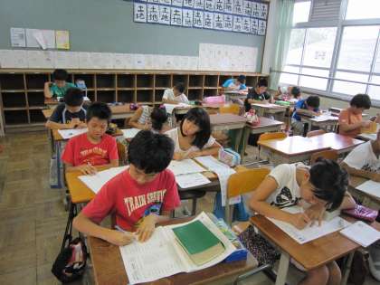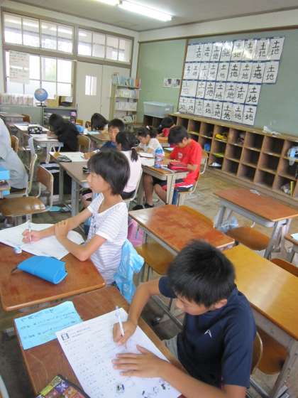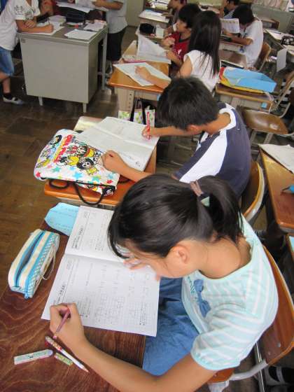 5年生は,ジョイントプログラムのおさらいプリントや夏休みの課題に取り組んでいました。