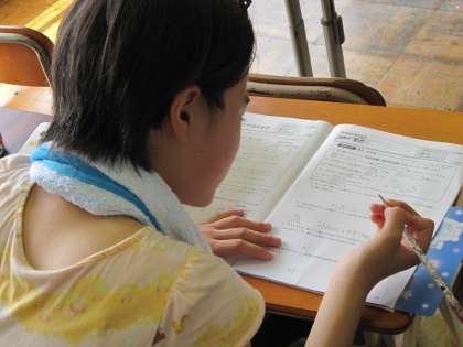 6年生は,夏休み明けに確認テストがあるジョイントプログラムのおさらいプリントや夏休みの課題をしていました。