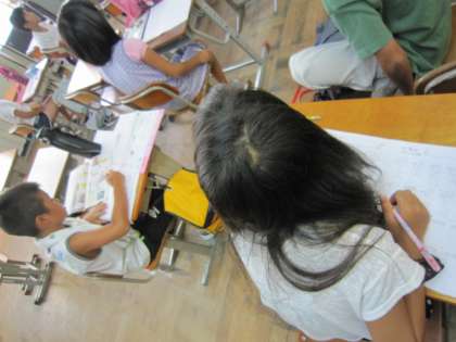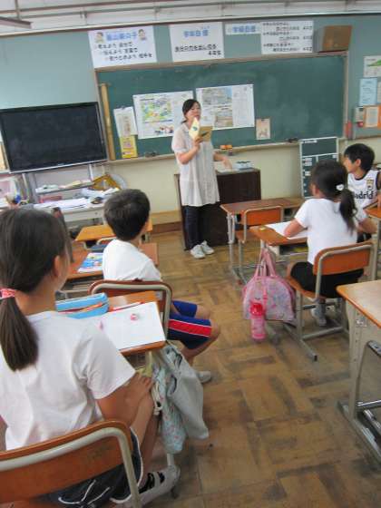 4年2組では,夏休みの課題や読書をした後,学習クイズを楽しんでいました。