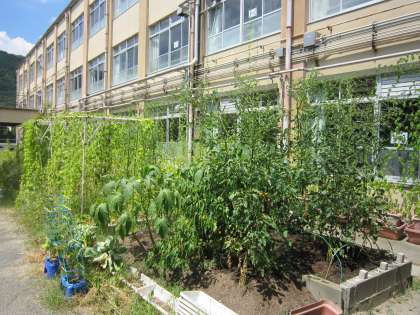 子どもたちと教職員の水やりによって,元気に育っています。