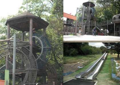 1年・2年・育成学級の担任で10月の遠足の下見をするために鴻ノ巣山運動公園へ行ってきました。主な活動場所となる大型遊具やローラースライダーなどを中心に見たり体験したりしてきましたが,大人でもドキドキわくわくできる場所でした。