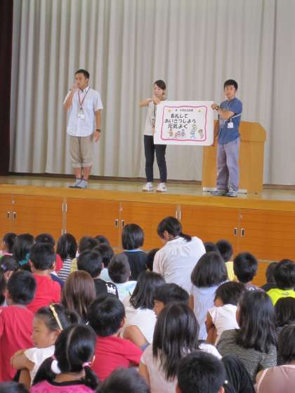 8・9月の生活目標は「名札して あいさつしよう 元気よく」です。