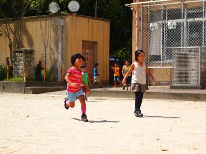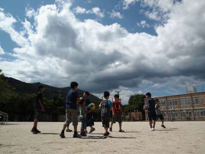 こんなに暑い日でも子どもは元気! 昼休みには歓声が何度も上がっていました。こんな光景が一番癒してくれますね。