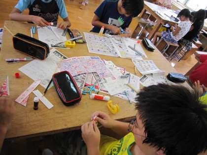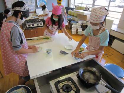 料理手芸クラブでは,餃子の皮を使ってピザを作りました。工作クラブでは,はし袋ロケットを作っていました。「飛ばして見せて」と言うと「あまり飛ばないよ」という返事が返ってきました。