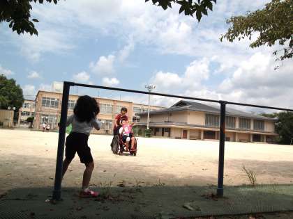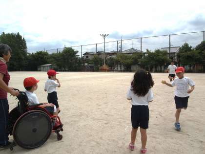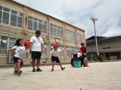 あおぞら学級の4校時は折り返しリレーでした。運動場の北端から鉄棒をタッチして戻って来て,バトンを次の人に渡します。暑い中でしたがみんな一生懸命頑張っていましたよ。きっと給食がおいしいでしょう。
