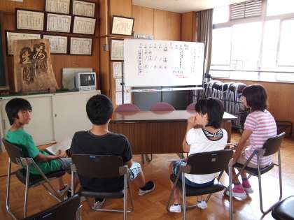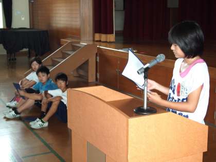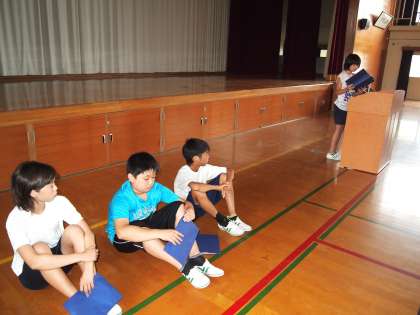 きらめきタイムの練習がはじまりました。今回は6年生の4人です。発表は9月7日の土曜参観の1時間目です。全校児童だけでなく保護者の方々も来られるのでプレッシャーはありますが,6年生の4人は張り切ってやってくれそうです。