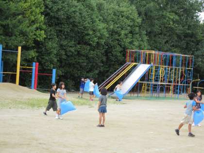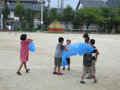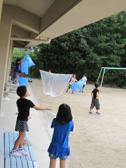 空気は目に見えないので,袋にとじこめて感じようとしていました。