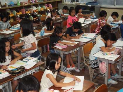 2年生はどちらも国語で「あったらいいなこんなもの」ということで,自分の想像力をフルに発揮しながら絵をかいていました。これにいろいろと自分なりの意味づけをして,最後はクラスで発表会をします。さて,どんな大発明が出てくるのでしょうか!?