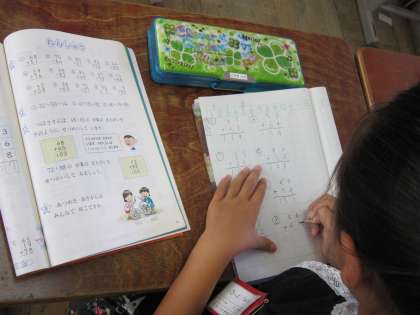 今日の3時間目。2年2組では,これまでに学習したことを使って,練習問題に取り組んでいました。