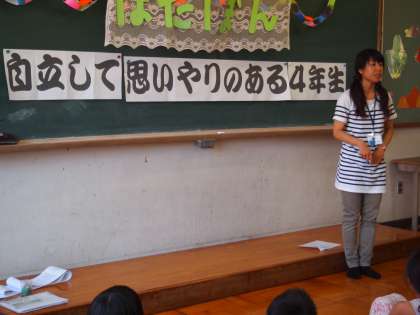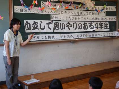 6時間目は4年生が「みさきの家 決起集会」(?)をしました。担任の先生たちからは「自立して…」や「人のために…」などと心構えのお話があり,一緒に行く先生たちからも激励の言葉をいただきました。2泊3日の宿泊で一回り成長してほしいと願っています。