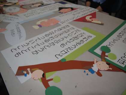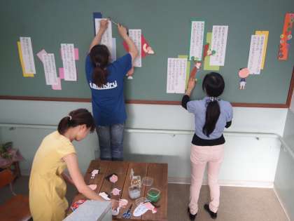 毎月1回,職員室から校長室へ上がる階段の踊り場の掲示がかわります。今回も明日の土曜参観に合わせて事務職員,管理用務員,養護教諭のみんなでワイワイ言いながら作りました。『おおきくなるっていうことは』の絵本です。明日,学校へ来られたらぜひのぞいてみてくださいね。