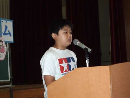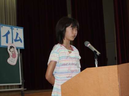 6年2組の2人はそれぞれ「ごめんなさい」と「ありがとう」について発表してくれました。いずれも自分のエピソードを交えたもので,聞いていた全校児童は感心していたように感じました。また,その発表に対しての意見や感想を述べてくれる人も少しずつ増えていってくれたら嬉しく思います。