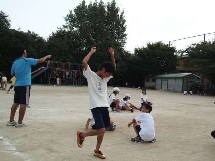 運動委員会の子どもたちが今回の企画をしてくれました。本番ではみんなを並べたりタイムを計ったり…。お疲れ様でした。
