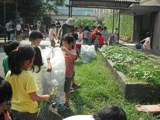 9月12日(木)の掃除時間に延期になっていた2回目の除草作業を行いました。今日は夏の日差しがもどってきたこともあって,土が乾燥して固くなっていて草がぬきにくかったようです。でも,子どもたちは大粒の汗をかきながらがんばって草ぬきをしてくれました。