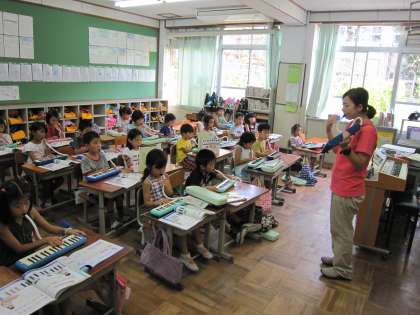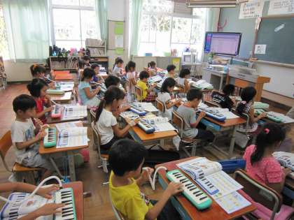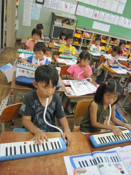 1年2組では,音楽の時間に鍵盤ハーモニカの練習をしました。