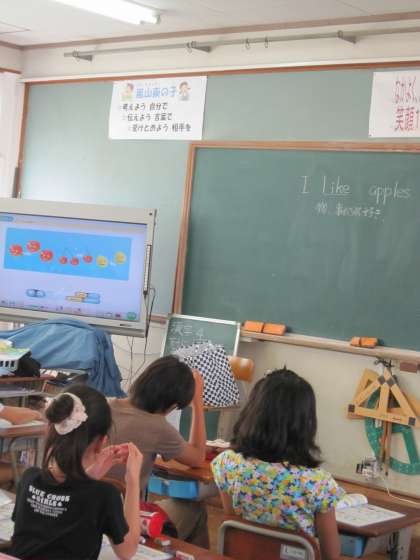 今日は,5年2組がI like applesという言葉を使って,英語に親しんでいました。