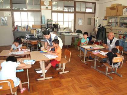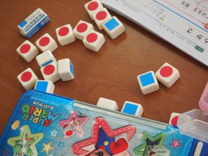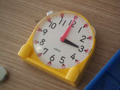 あおぞら学級は算数の時間でした。みんな一生懸命考えていました。ひきざんや時計の読み方を学んでいましたが,それぞれ具体物を使って考えていたのが目をひきました。やはり,こういうものがあると考えやすいですね。