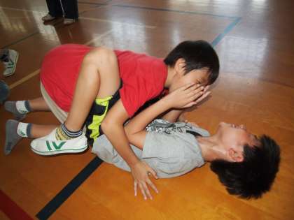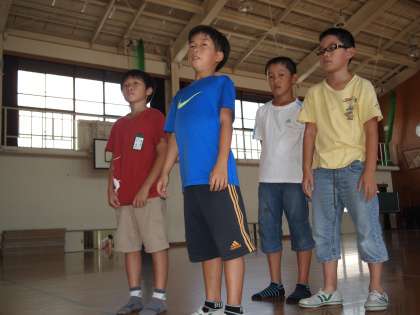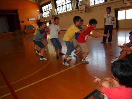 レクレーション係はいろいろな出し物のリーダーです。大蛇が現れて人を襲い次々と仲間を増やしていくというゲーム。まずは係が恥ずかしがらずに堂々と演じて見せることが大切ですね。なかなか楽しそうでしたよ。頑張って!