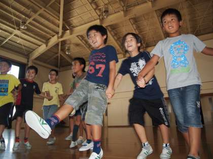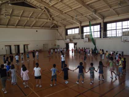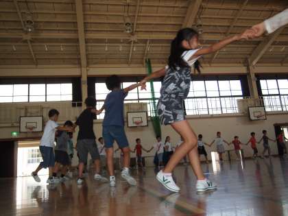 『マイムマイム』の練習です。前回は「手をつなぐ」ということができなくて,ずいぶん叱られたようです。今日はしっかりできていましたね。