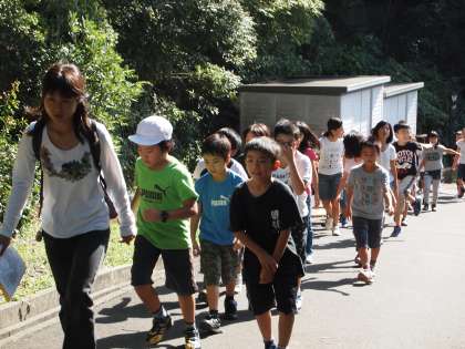 90畳の部屋は今日は女子が使います。(男子はバンガロー)さっきまで夜の肝試しのコースを下見してきました。普通に歩けば15分で一周回れるコースです。