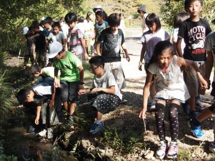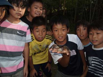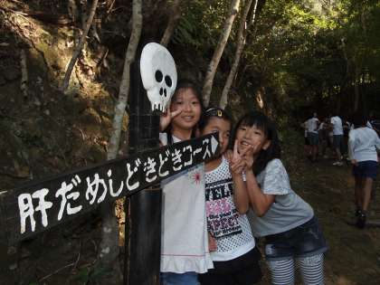 肝試しのコースは変化に富んだコースです。中でも子供たちが喜んだのはカニです。みさきには多くのカニがいるのですが「先生,毛ガニや!」と叫ぶので,行ってみたら確かに毛の生えた大きなカニでした。本物の毛ガニならとっても嬉しいのですが…。