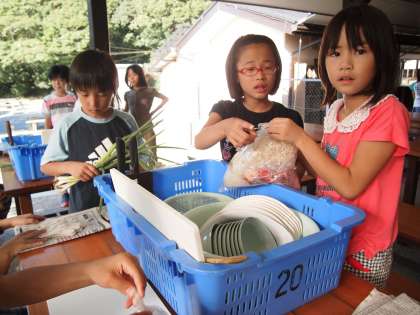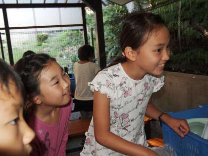ふだんこういうことはほとんどの子がやっていないのではないでしょうか?自信なさそうに確かめ合う姿,友達の言うとおりに動いている子…,スタートはこんな感じです。でも,これからだんだん要領がわかってきて自分で動き出すと思いますよ。楽しみです。(4:05)