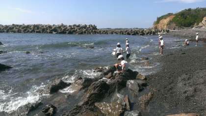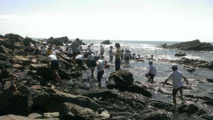 宮崎浜で,岩場の間にあるタイドプールにいる生き物の観察をしました。