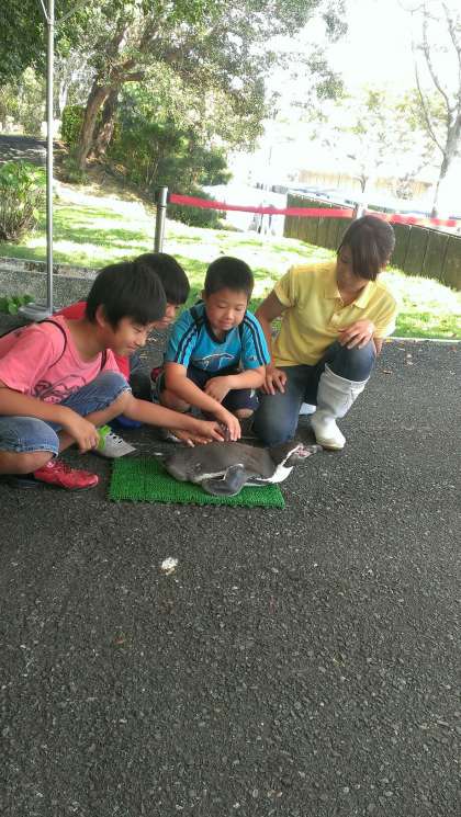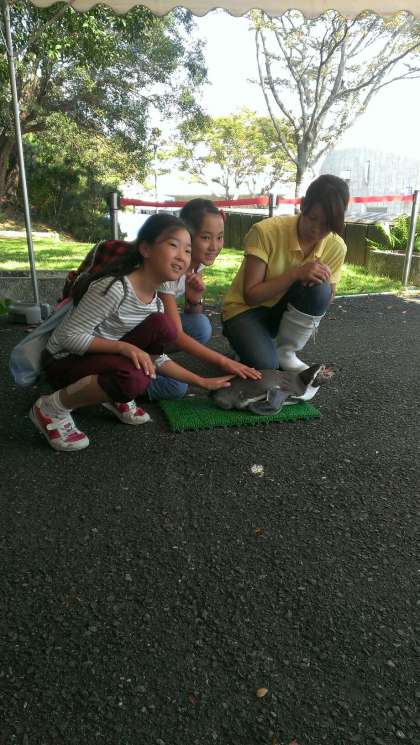 少しドキドキしながらも思ったよりもさらさらだった!とペンギンとのふれあいを楽しみました。