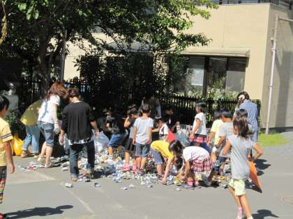 今日(9月25日)は,アルミ缶回収の日です。