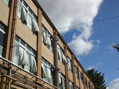 ふと中校舎を見上げれば風を受けて教室のカーテンが外へふくらんでいました。今朝は気温が下がりとてもしのぎやすいですね。でも,週末はまた暑くなるようです。日曜日の「学校クリーンアップ作戦」も涼しいといいのですが…。