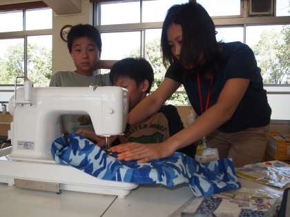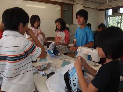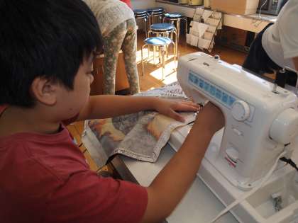6年2組はミシンを使ってのエプロンづくり。「存分に使いこなして素敵なエプロンを完成させてほしい」という担任の心は伝わったでしょうか…。