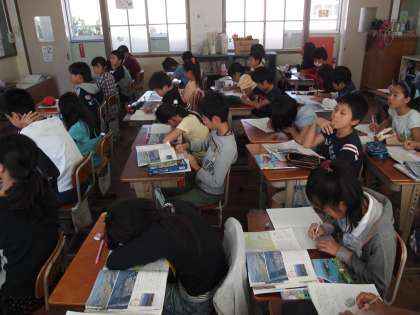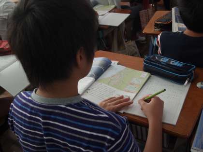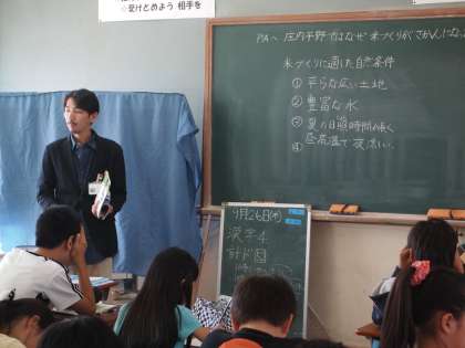 5年2組は社会でした。「なぜ庄内平野で米づくりが盛んなになったのだろう?」というテーマで考えました。広く平らな土地や方や豊かな水があることなどが,その条件に当たるそうです。