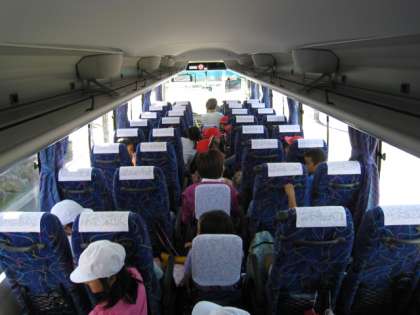 まずは学校から阪急嵐山駅まで歩き,そこから二台のバスに乗って