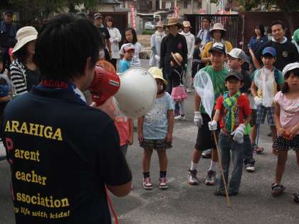 9時半になって子どもたちがやってきました。セレモニーの後プールの東側や正門付近の草引きを中心に汗を流しているところです。