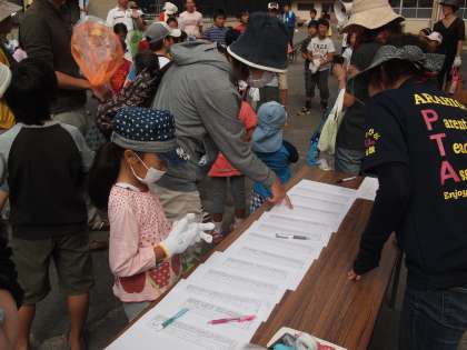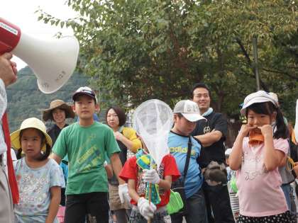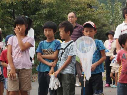 参加した子どもたちは虫取り網や籠も持ってきています。この後の「ムシムシ大観察会も楽しみにしています。