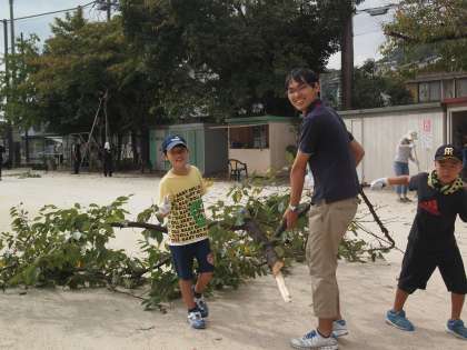子どもたちも清掃に参加し始めました。いろいろ相談しながらやっているのはほほえましいものです。