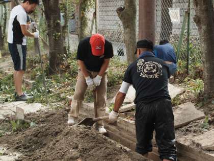 おやじの会の方々には運動場南側の溝掃除もやっていただいています。
