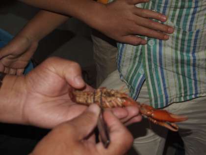 「アメリカザリガニはちんちんが2つあってパンツもはいています。今からそれを見せてあげます。」と子どもたちの周りをまわっていかれました。