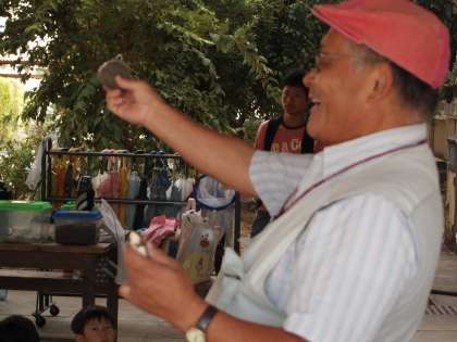 「この財布はガマ口と言います」「カエルの口はこれによく似ています」