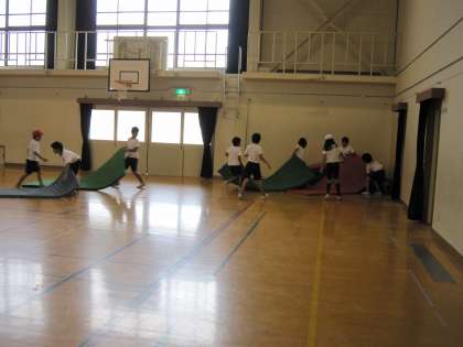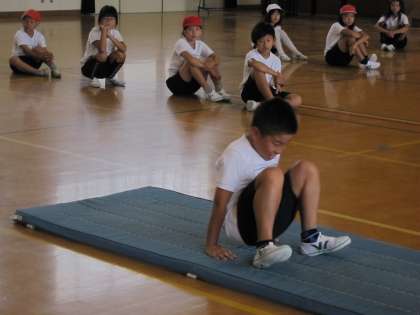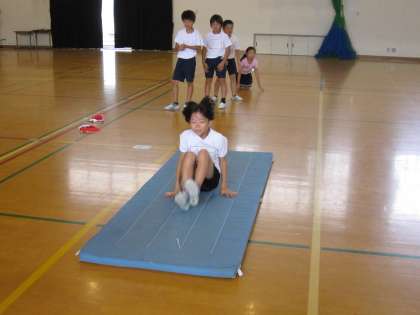 4年2組は,体育館でマット運動をしていました。