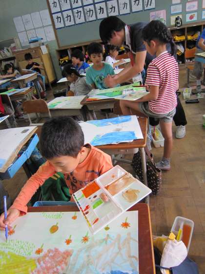 同じお話を聞いて描いているのですが,一人ひとり違う場面を描いているように思えました。