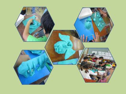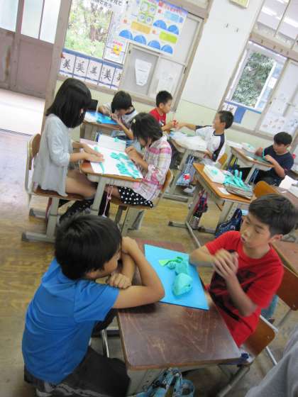 子どもたちは,ねん土を使ってさまざまなものを作っていました。