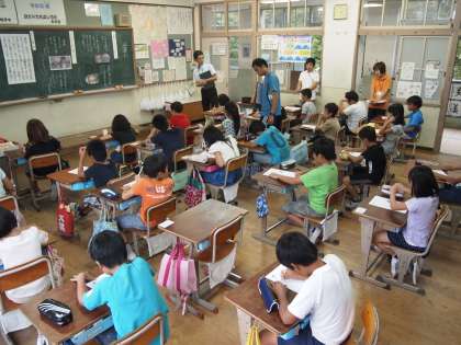 5時間目,4年生1組で道徳の校内研究授業を行いました。校内研究は内容を深めるために各学年とも学級を替えて2回行います。今日は15日の火曜日に4年2組で行う校内研究授業のための事前授業になります。