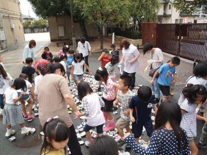 思わぬ青空になりました。中間休みの空き缶踏みが予定通りできましたね。今日は委員さんや2年の保護者の肩にお世話になっています。ありがとうございました。