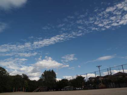 そんな青空と白い雲の下,運動場で体育をしている子どもたちがとても幸せに見えました。さぁ,前期も明後日は終業式です。