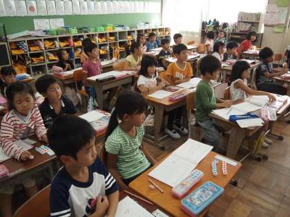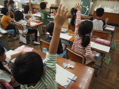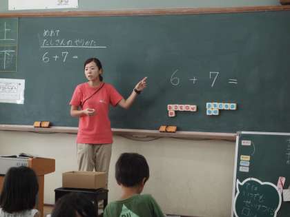 隣のクラスも同じところをやっていました。数図ブロックの扱いにもすっかり慣れてテキパキ進めていました。