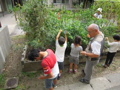 あおぞら学級では,学級園で作ったミニトマトやトウガラシ,おくらなどの収穫をしていました。トウガラシの葉もとっていたので,どうするのかと聞いてみると,おひたしにして食べるとおいしいよと教えてくれました。
