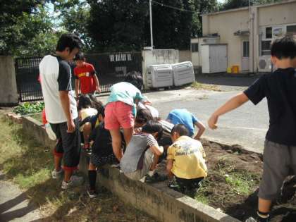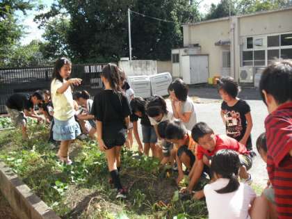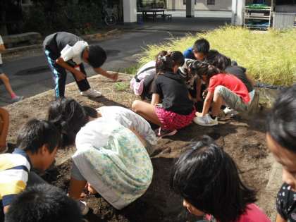 学年園はこれからかぶやほうれん草などを植えて育てる予定です。